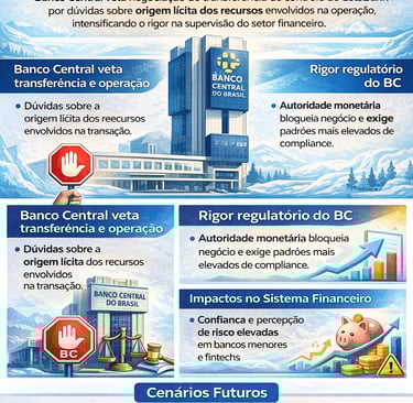 A ação mostra que o Banco Central está atento não apenas aos números de uma transação, mas também à origem dos recursos e ao cumprimento de regras de compliance, especialmente em instituições que tiveram passivos significativos ou envolvimento em eventos de liquidação ou regime especial no passado.