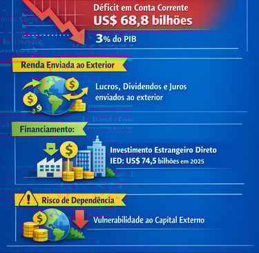 Brasil fecha 2025 com déficit externo de US$ 68,8 bilhões: o que isso revela sobre a economia